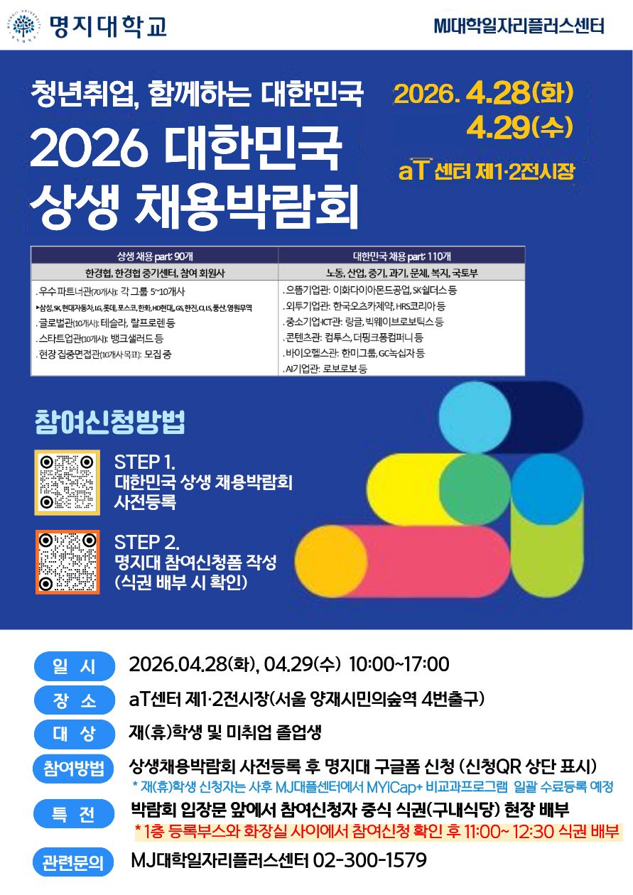 [명지대 취준생을 위한] 2026 대한민국 상생 채용박람회 참여 안내